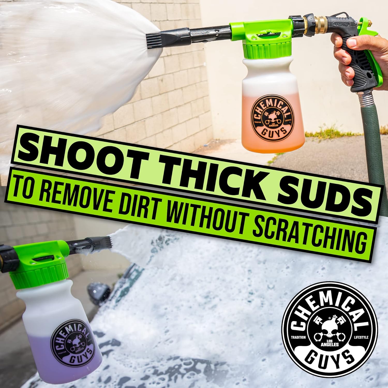 The kit includes a foam gun, bucket, and five 16 oz bottles of car care cleaning chemicals, ensuring your vehicle gets a thorough clean from top to bottom. The foam gun easily connects to your garden hose, making it simple and convenient to use.